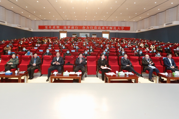 2月12日下午,我校2023年度工作会议在大学生活动中心举行。校领导班子成员,中层干部,社科联、科协、民主党派、知联会、侨(留)联会负责人,省一流(重点)学科负责人,国家、省一流专业负责人,省部级以上人才,全体科级干部和辅导员参加会议,广大师生通过网络收听收看了会议。会议由校长许慧霞主持。