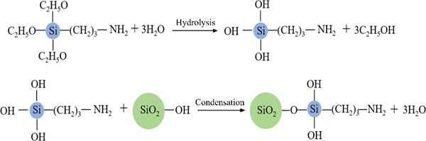 受生物体自修复特性的启发,将智能自修复概念引入到聚合物材料中,材料中自修复因子可形成智能触发—响应—修复机制,快速实现自愈合,从而延长涂层的使用寿命。然而,由于自修复因子(TO@CA)作为填料形式加入,对硅橡胶基体(SR)的力学性能、耐腐蚀性能及自修复性能产生重要影响。为此,提出通过填充无机纳米粒子SiO2对SR进行增强改性,以改善TO@CA与SR间的界面相容性及分散性,最大限度的抵消其对SR力学性能的影响,提高其耐腐蚀性及自修复性。首先,选用偶联剂KH550对纳米SiO2粒子表面进行化学改性,水解后生成的硅醇基与纳米SiO2粒子表面的羟基发生缩合反应,形成共价键-Si-O-Si-;同时非水解基团与SR通过H键作用相连。氨基化的纳米SiO2粒子表面由亲水性转为疏水性,极大地改善了SiO2与SR的相容性及分散性。其次,改性后的纳米SiO2粒子与SR形成了三维连通网络,与硅链网络耦合形成了双网络结构,当有外力作用时,SiO2-SR及SiO2-SiO2之间的可逆键合可有效地耗散机械能量,从而提高SR的力学性能。两者的协同作用,可实现对涂层材料的自修复和力学性能的提高,从而显著提高涂层对基底材料的耐腐蚀防护性能。