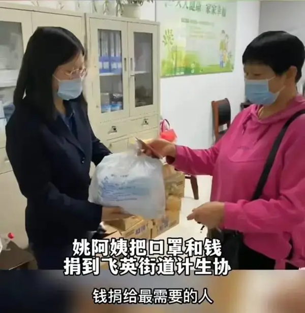自疫情以来,姚海英连续3年给街道、社区捐赠口罩及现金共计4000元。我已经退休了,身边也没有子女陪伴,因此街道社区的工作人员都很照顾我。虽然我的工资不高,但是我的开销不大,所以我有多余的钱就会稍微捐一点,做一些力所能及的事情回馈社会。她从自己为数不多的退休工资当中攒出一笔钱,捐给需要帮助的人们。