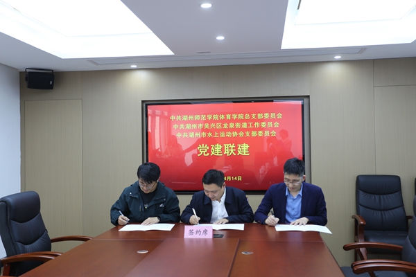 为响应“阳光体育”“全民健身”“体育强国”“健康中国”号召,推动美丽湖州建设,4月14日下午,体育学院党总支与吴兴区龙泉街道党工委和湖州市水上运动协会党支部在龙泉街道办事处签订党建联建合作协议。三方负责人参加签约仪式。