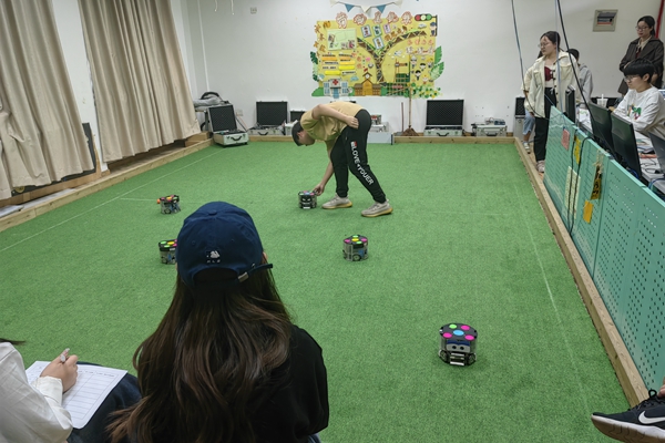 为进一步提高我校机器人竞赛水平,更好备战第七届浙江省大学生机器人竞赛,4月16日下午,我校于10幢304举办了第十七届机器人竞赛之小型机器人足球比赛。本次比赛由足球机器人科技公司和我校联合主办,教师教育学院承办,40余人参加。