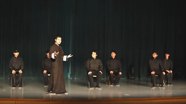 早上8:00,所有演员到达大学活动中心开始彩排。休息时间、化妆时间,都有演员和工作人员在后台自行彩排、调试设备,只为诗剧的完美呈现。晚上19:00,《恰同学少年》诗剧正式拉开帷幕。诗剧以毛泽东创作的诗篇为线索,讲述了别亲人赴远方、明志向悟国事、舍小家赴革命、联妇女办讲学四幕,展现了他的成长过程与昂扬斗志。演出过程中,贯穿全剧始终的家国情怀让现场观众为之动容,气势磅礴的朗诵充满张力,令观众随着故事情节发展一起感受一代伟人的成长。舞台上演员们精湛的演技和饱满的感情,赢得现场久久不息的掌声与喝彩。
