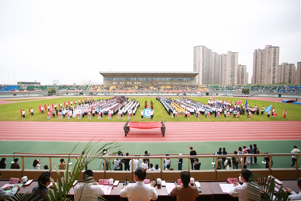 4月20日上午,我校第二十四届运动会于东校区运动场开幕。校长许慧霞,校党委副书记陈永华、丁敢真,副校长、校体委主任舒志定,校纪委书记任伟海,副校长潘音、楼建林,校党委委员、组织部长何小青,校党委委员、党校办主任劳士健出席。各职能部门和二级学院、附属单位近万名师生参加了开幕式。开幕式由陈永华主持。