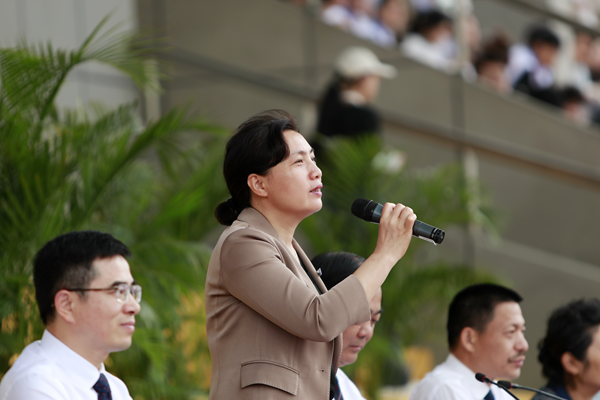 在全校师生们热烈欢呼声中,许慧霞宣布我校第二十四届运动会开幕。
