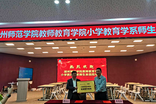教师教育学院负责人为织里实验小学授牌,双方代表共同签署“湖州师范学院小学教育专业定向师范生实践基地”合作协议。