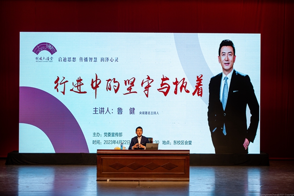 在与师生们分享成长感悟时,鲁健老师说,自己大学就读的专业并不是播音主持,但是,他怀揣着一个成为主持人的梦想,因此,他利用了课余时间去学习播音主持的相关课程。一次偶然的机会,他在电视台主办的朗诵大赛中获得了第一名,这更加坚定了他成为主持人的梦想。鲁健老师表示,“为爱执着而不偏执”是推动自己追求梦想的动力。“执着和偏执不一样,执着是从自己的追求中能够感受到幸福和快乐。”因为有着热爱和执着,他在工作之余,选择了考研,并考取了北京广播学院(中国传媒大学前身)。鲁健老师认为,人生在不同阶段有不同的理想,理想会经历一个逐渐清晰的过程,他鼓励学生们,“许多事情值得我们执着,人生充满无限可能,要不断扩展生命的体积,扩展人生的面积和深度,接触更多的人和事,不断思考自身、突破自己。”