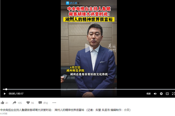 2023年4月23日,南太湖号报道中央电视台主持人鲁健做客我校胡瑗大讲堂。