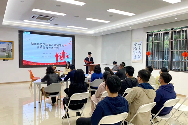 为深入学习宣传贯彻落实党的二十大精神和全国高校思想政治工作会议精神,加强我校辅导员队伍专业化职业化建设,突出以赛促学、以赛促建,增强育人本领,提升立德树人工作成效,4月23日,我校在明德楼一楼党建展厅举办了第八届辅导员素质能力大赛决赛。比赛邀请浙江传媒学院、湖州学院、浙江水利水电学院、湖州职业技术学院党委学工部相关负责人,我校学工部、研工部负责人,组织部、宣传部相关负责人及部分二级学院负责人担任评委。26名辅导员参加决赛,各学院辅导员和学生工作人员现场观摩比赛。