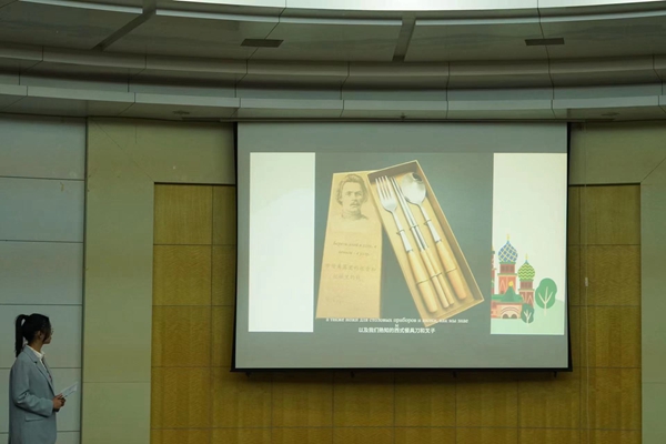 为丰富校园生活,促进同学们对于俄罗斯文化的了解,加强对中俄文化发展、人文合作和交流的认识,外国语学院俄语社于近日开展了中俄文化创意设计产品评审会活动,邀请老师和同学们一同品评选手们的中俄文化创意设计作品。活动邀请俄语系王幸鑫老师、外教伊莉娜老师担任教师组评委,二十位学生代表担任学生组评委,为中俄文化创意设计作品打分。