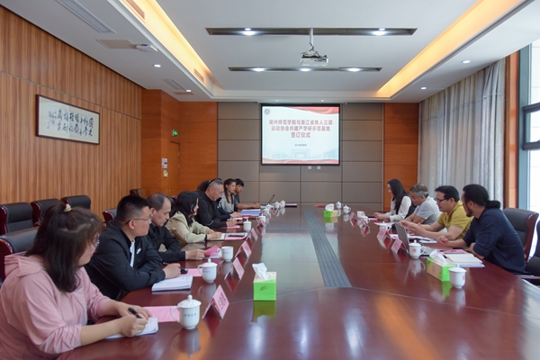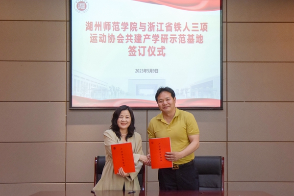 5月9日下午,我校与浙江省铁人三项协会共建的“产学研示范基地”合作签约仪式在明达楼113会议室举行。浙江省铁人三项协会会长郭新桥、秘书长顾建达,我校社会合作处负责人、体育学院负责人等出席了此次仪式。