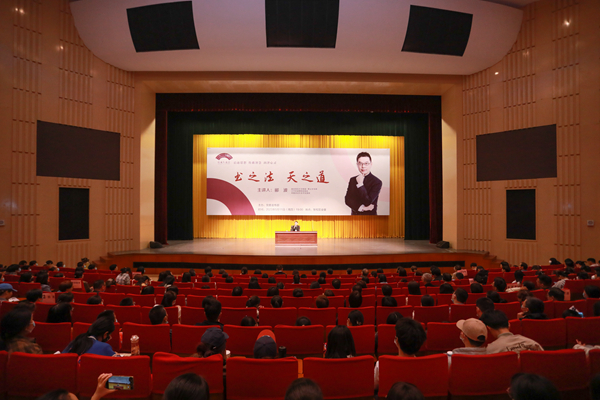 “华夏文明属于原生文明,从古延续至今而没有断裂,原因就在于华夏文明基于汉字得以传承。汉字的底层逻辑是高维度的,它蕴含着‘天之道’——中国人的哲学思想。”老子《道德经》中写:“天之道,损有余而补不足。人之道则不然,损不足以奉有余。”郦波教授讲授了中国古代哲学把“天”人格化的过程,并结合古今中外的案例,分别阐释了“损有余以补不足”的“天之道”和“损不足以奉有余”的“人之道”。郦波教授表示,在当今时代,我们的信心从汉字中来,从书法中来,从华夏文明的“道”中来。“我们要弘扬优秀传统文化,增强民族凝聚力,只要能够‘咬定青山不放松’,便可以‘千磨万击还坚劲,任尔东西南北风’。国家如此,民族如此,个体也是如此,方能不负时代、不负青春。”