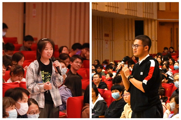 在提问环节,我校学生就跨专业学习和诗歌研究等问题与郦波教授进行了交流。郦波教授热情而幽默地进行了答疑解惑,他结合考据学、文献学的学科的案例,表示真正的学习不是为了考试,而是要将自己与时代密切相连,对各学科知识融会贯通。研究诗歌要由浅入深,不能只停留于表面,而要逐步探索诗歌中更广阔的意蕴。