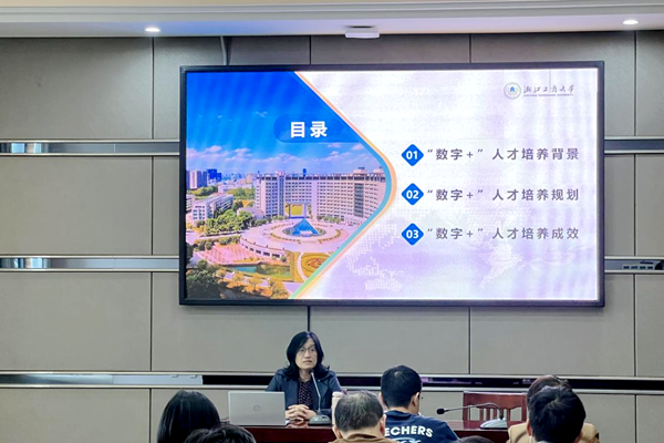 5月12日下午,浙江工商大学教务处处长伍蓓来我校作题为“数字时代高等教育的变革与创新——‘数字+’人才培养”的专题讲座。各二级学院教学副院长、专业负责人及执行负责人到场聆听。