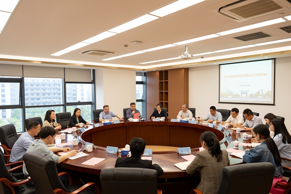 为全面落实党中央、国务院关于高校毕业生就业工作决策部署,认真落实2023届全省高校毕业生就业创业工作网络视频推进会精神,调研分析当前毕业生就业形势,谋划部署下一步重点工作,促进2023届全省高校毕业生顺利就业,5月18日下午,浙江省高校毕业生就业工作座谈会在我校召开。浙江省教育厅高教处三级调研员周武汉、浙江省教育发展中心副主任罗万里、学生就业部主任朱伟君、学生就业部副主任陈纯出席,嘉湖地区7所高校就业工作负责人、毕业班辅导员代表、毕业生代表,用人单位代表等参加会议。