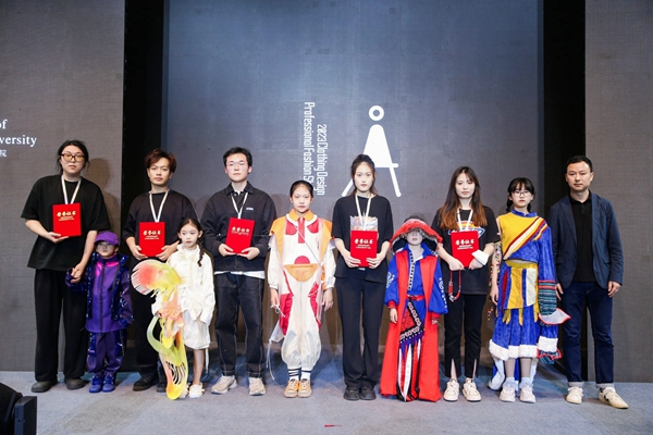 在颁奖环节,艺术学院相关负责人为获奖同学颁奖并合影留念。