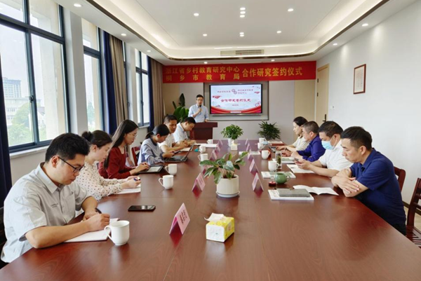 据悉,本次合作研究具体分为四个研究项目实施。未来三年,中心将深入桐乡,对县域乡村教育发展状况展开全面调研,诊断问题,提出发展对策,并将深入挖掘桐乡市四所学校的发展特色,为乡村学校高质量发展提供智力支持。该项目也是中心与地方合作的又一重要项目,接下来,中心将在省教育厅、学校与学院的大力支持下,不断加强与地方基础教育的联系,深化合作研究,强化决策咨询与社会服务担当,勇担乡村振兴使命,助推我省教育共富。