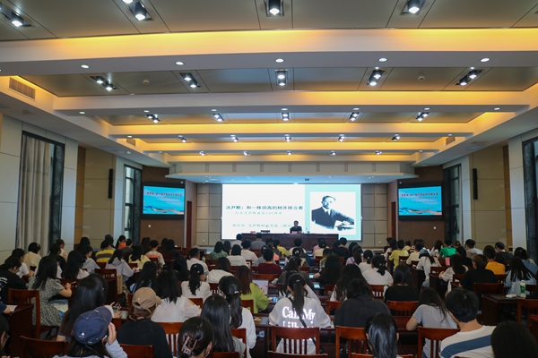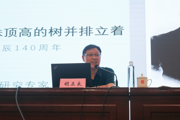 胡正良先生把沈尹默放入了中国20世纪的历史大背景、文化大视野中,对其成就和影响作了全面的考量。他介绍,讲座题目“和一株顶高的树并排立着”来自沈尹默先生的诗歌《月夜》,他认为,沈尹默用一生的坚毅和温情,始终与文化、诗词和书法这三株顶高的树并排地立着,最终站成了一帧沧桑豪迈的时代剪影。