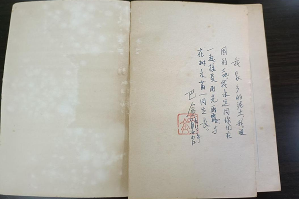 近日,徐重庆先生生前好友吴峥嵘先生专程来校,向徐重庆藏品馆捐赠部分个人收藏物品,包括巴金先生亲手签名的《春》、包畹蓉先生一幅手迹以及徐重庆先生给吴峥嵘先生的书信等。