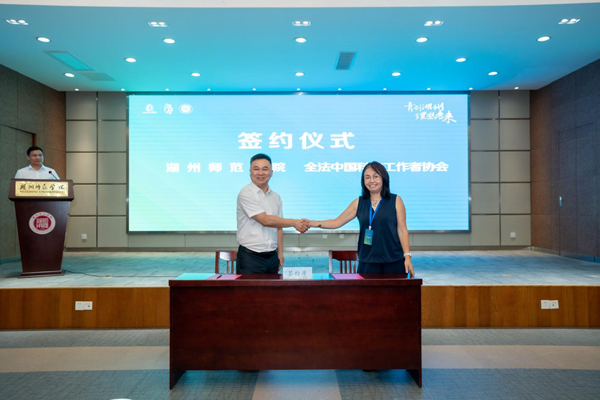 仪式上,湖州师范学院、湖州市人才产业集团分别与全法中国科技工作者协会签订合作框架协议,并举行了“春晖计划”之“才聚湖州”吴兴行暨湖州师范学院“3+1”平台法国高层次人才论坛启动仪式。