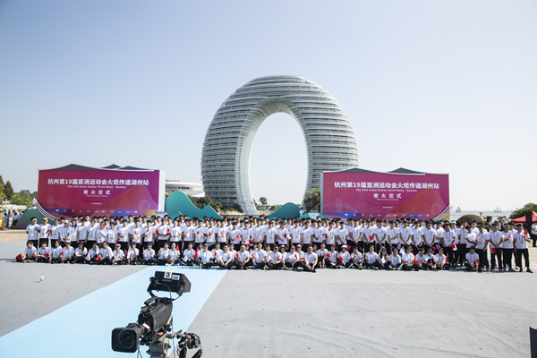 9月9日上午9点,杭州第19届亚运会火炬传递湖州站启动。湖州站火炬传递从湖州市行政中心南广场出发,以太湖路为传递主干道,最后到达南太湖月亮广场,总长度9.5公里。
