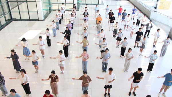 体育学院高度重视此次收火仪式助威活动,总计动员240名学生克服万难在暑期提前返校参加学院组织的内部培训。仪式当天,体育学院负责人、指导教师一行7人带领200名学生自清晨5点便奔赴现场,以高质量高标准完成了核心区持续6小时的助威活动。