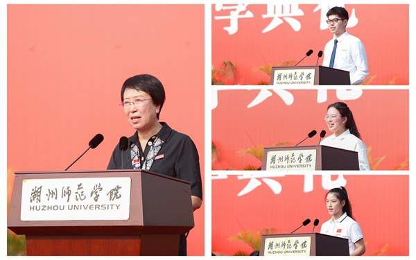 在校生代表、第九届浙江省国际“互联网+”大学生创新创业大赛金奖获得者、生命科学学院水产养殖学专业2021级学生李哲表示,自己在湖师院感受着老师们对学术的追求、分享着朋友们对生活的热爱,愿2023级新生们明确目标、脚踏实地,志存高远、心怀远方,保持定力、勇于突破,和在校生一起成长为更好的样子。