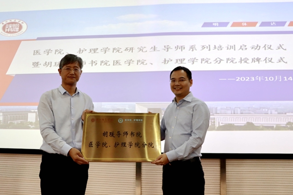 为更好地发挥研究生导师立德树人引领示范作用,10月14日,医学院/护理学院举行研究生导师培训会暨胡瑗导师书院医学院/护理学院分院授牌仪式。研究生院、学科处、研工部领导班子成员,附属第一医院、附属中心医院,我校医学院/护理学院相关负责人、研究生导师代表参加会议。