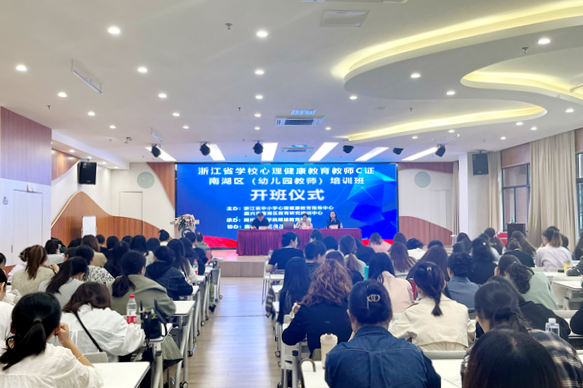 为满足嘉兴市南湖区幼儿园心理健康教育的发展需求,进一步提高教师心理健康教育基础知识,10月13日,浙江省中小学心理健康教育指导中心及嘉兴市南湖区教育研究培训中心联合我校继续教育学院,在嘉兴市第三幼儿园新区园举办“心理健康教育教师C证”培训班,来自嘉兴南湖区各幼儿园的115名教师参加培训。嘉兴南湖区教育研究培训中心副书记、副主任陈微,我校继续教育学院相关负责人参加开班仪式并讲话,会议由南湖区教育研究培训中心师训处主任顾建锋主持。