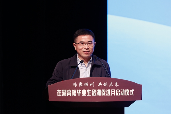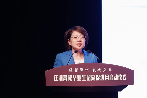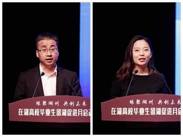 湖州市委组织部副部长、市人社局局长徐晓惠就湖州市大学生就业创业环境进行推介,为大家详细介绍了大学生招引政策及“青创新城”建设情况,诚挚邀约在湖高校毕业生留在湖州建功立业。