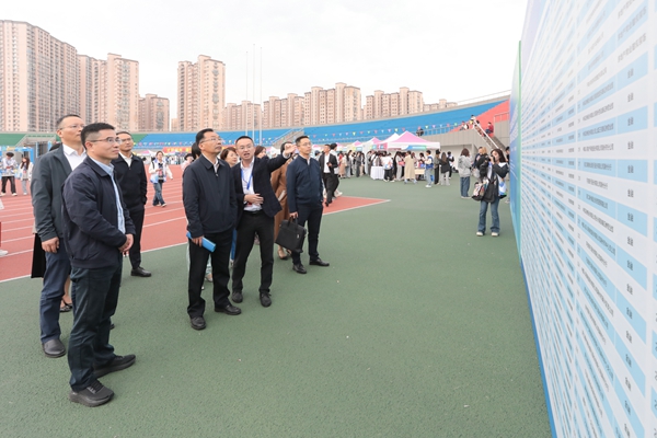仪式结束后,与会领导来到东校区运动场,对正在这里举办的浙江省2024届高校毕业生湖州专场招聘会暨在湖高校2024届毕业生秋季大型招聘会给予指导,与用人单位和毕业生们进行交流。招聘会上,共有330家企事业单位进场招聘,提供8200余个就业岗位,毕业生们带着精心准备的简历在心仪的招聘台前积极咨询、洽谈。