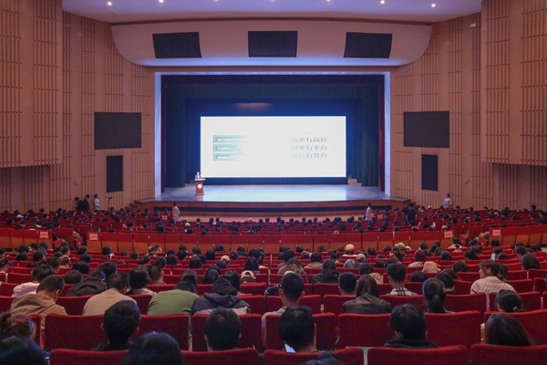 为深入实施人才强市创新强市首位战略,做活人才“引育留用”文章,吸引更多在湖高校毕业生留湖就业创业,11月8日下午,“缘聚湖州·共创未来”在湖高校大学生留湖促进月开幕式在我校举行。湖州市副市长夏坚定、我校党委副书记丁敢真、湖州学院党委副书记唐华、浙江水利水电学院副院长姜翰照、浙江工业大学(莫干山校区)管委会常务副主任肖春、湖州职业技术学院副校长李晓英等出席仪式。市县区人社局负责人,浙江工业大学、浙江科技学院、浙江水利水电学院、湖州学院、湖州职院、浙江宇翔职院和我校相关职能部门负责人及二级学院班主任、就业辅导员代表,以及来自湖州学院、湖州职院及我校的学生共1200余人参加仪式。