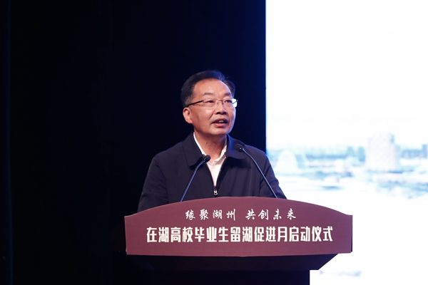 丁敢真在开幕式上致辞,他代表学校欢迎与会嘉宾,感谢大家长期以来关心支持学校事业发展。他指出,学校作为扎根湖州大地的本土高校,始终高度重视大学生留湖工作,全力培养适应湖州经济社会发展的优秀人才,努力成为湖州人才的资源库和集散地。围绕大学生“留湖”和招引人才来湖工作,学校加强宣传、搭建平台、完善机制,让学生知湖州、懂湖州、爱湖州、留湖州,让人才成长在湖州、发展在湖州。他勉励同学们把握机会,找准坐标,在湖州这片创业热土上大展宏图,实现人生理想。
