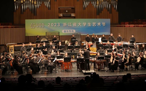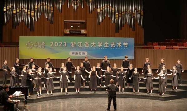 据悉,本届浙江省大学生艺术节以“民族魂·中国梦”为活动主题,分为艺术表演类、大学生艺术实践工作坊、艺术作品类、高校美育改革创新优秀案例四个赛道,全省102所高校选送声乐、器乐、舞蹈、戏剧、朗诵节目共770个参加本次大艺节活动,其中183个节目入围现场展演。在本届大艺节中,我校参赛师生将优秀传统文化与现代表演艺术融为一体,弘扬了中华传统文化,展现了当代大学生与祖国同行、与时代同行、与梦想同行的价值追求。
