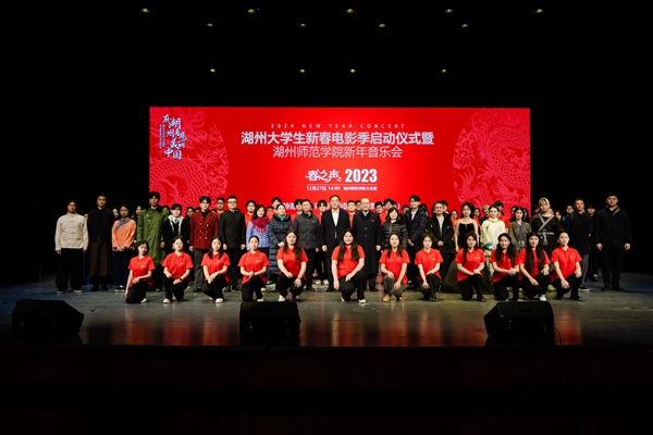 12月27日,观影有我——2023湖州大学生新春电影季暨湖州师范学院新年音乐会在我校东校区会堂举行。本次活动由中共湖州市委宣传部主办,湖州师范学院、湖州市新闻传媒中心承办,湖州学院、湖州职业技术学院、湖州市文旅集团协办。著名电影艺术家乔榛,省委宣传部电影处处长蒋余鹰,市委常委、宣传部部长申中华,我校党委副书记陈永华,湖州学院党委副书记唐华,市委宣传部副部长查建华,市新闻传媒中心党委书记、主任陈建良,湖州职业技术学院学工部部长谢飞,湖州市文旅集团党委书记、董事长施国峰,著名二胡演奏家、教育家,上海音乐学院教授王永德出席。我校800多师生现场观看。