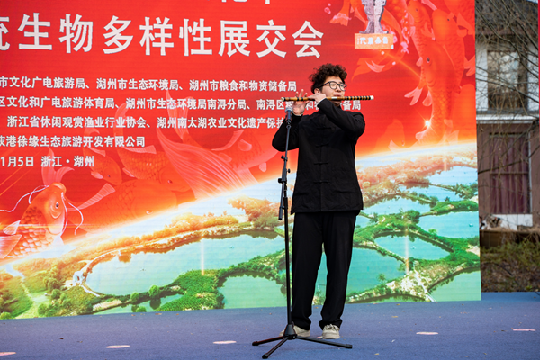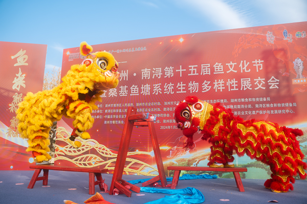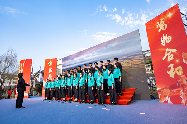 蚕丝绸文化社团为开幕式带来了多个精彩节目,包括舞狮《舞狮祈鱼桑》、笛子独奏《蚕歌》、独唱《天堂渔歌》以及大合唱《鱼桑文化研学队歌》等。锣鼓声和雄狮起舞,悠扬的笛音、灵动的渔歌以及激扬的研学队歌展现了师院社团的青春活力。演出向荻港人民传递了“鱼桑龘龘、万物合和”的美好祝福,同时展现了和孚镇荻港村荻港渔庄民众对龙年鱼桑兴旺的期盼,以及共建人与自然和谐共生的友好型地球家园的愿景。