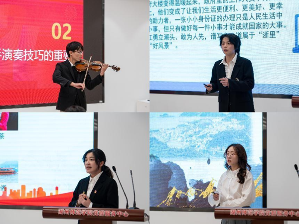 教师队伍中,来自理学院的王罗那老师剖析了中国经典故事中的数学原理和现代应用,强调数学在生活中的重要性和对中国数学文化的传承,鼓励青年以理性思维洞察时代变迁,为强国梦想努力。马克思主义学院杨泽峰老师从妙山村凤凰涅槃的故事入手,阐述了“八八战略”下浙江实现共同富裕的创新方案。音乐学院邓肯老师则通过音乐《金色的炉台》向观众传递了对劳动者的赞美和敬意。
