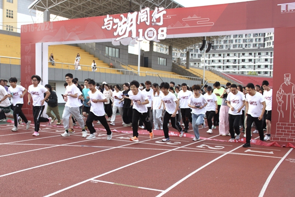 为庆祝学校办学108周年,抒发师生爱校荣校情怀,4月18日,教师教育学院开展了以“与‘湖’同行1○8”为主题的师生同跑迎校庆活动,通过师生同跑的形式鼓励更多的湖师学子在追逐理想的道路上奔跑,奔向更好的自己,奔向“湖师”的未来。此次活动吸引了近800名师生参与。