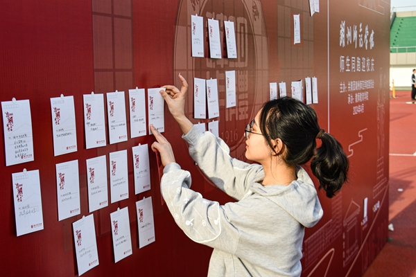 伴随着动感的音乐节拍,到场师生在领操员的带领下充分热身。一首《千山万水》更是将现场氛围推至高潮,这首由共青团中央发布、100位青年团员“共创”的歌曲,通过师生同唱的方式二次演绎,戳中全场师生们的心。随着教师教育学院党委书记沈江龙一声令下,此次师生同跑迎校庆活动正式拉开帷幕,浩大的师生队伍展现出别样风采,操场上充满着生机与活力。