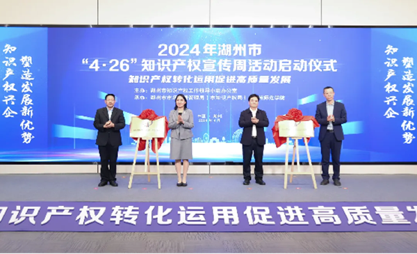 4月22日下午,由湖州市知识产权工作领导小组办公室主办,我校与湖州市市场监督管理局(市知识产权局)共同承办的2024年湖州市“4·26”知识产权宣传周活动启动仪式在创新创业大楼报告厅举行。湖州市委常委、副市长阮叶萍,我校副校长舒志定,市市场监管局局长娄显杰共同启动2024年知识产权宣传周活动。市知识产权工作领导小组成员单位有关领导,区县有关部门业务科室、高校科研院所、企业、知识产权律师代表,我校图书馆、科技处等部门负责人、师生代表等参加了现场活动。启动仪式由市政府副秘书长刘一闻主持。