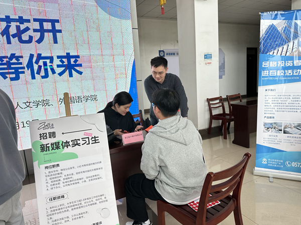 为推动应届毕业生的就业工作,近日,经济学院联合人文学院、外国语学院共同承办“春暖花开时,‘职位’等你来”就业招聘会。本次招聘会邀请到吴兴区、南浔区、安吉县的9家用人单位, 累计提供40余个就业、实习岗位。