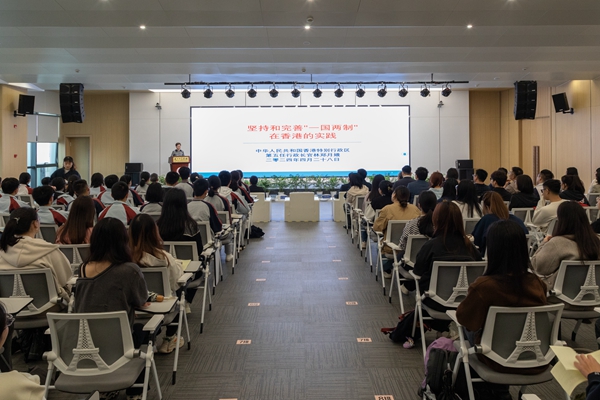 报告会上,林郑月娥女士以《坚持和完善“一国两制”在香港的实践》为主题,从回顾历史、香港特区的宪制秩序、特区行政长官的宪制地位、坚持和完善“一国两制”的实践、教育的重要性等五个方面讲授了“一国两制”在香港的实践,分享了自己在担任第五任行政长官期间的体会感悟和香港如何发挥“背靠祖国,联通世界”优势更好融入国家发展大局,表达了对香港未来的信心。