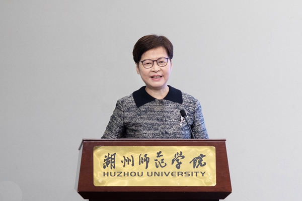 4月28日上午,香港特别行政区第五任行政长官林郑月娥女士到访我校,作专题报告并与师生代表互动交流。湖州市委常委、统战部部长潘友明,全国政协委员、香港浙江省同乡会联合会会长詹洪良,浙江省政协委员、香港浙江省同乡会联合会常务副会长、湖州旅港同乡会会长顾伟诚,浙江省政协委员、香港浙江省同乡会联合会副会长、香港嘉兴同乡会会长程奇,上海交通大学教授许泓,省委统战部港澳台处二级调研员章丰华,湖州市委统战部常务副部长吴焱国等陪同来访。我校党委书记金佩华,党委副书记陈永华,党委委员、组织部统战部部长劳士健,湖州中学副校长竺斌出席活动。我校师生代表和湖州中学文科创新班师生等150余人聆听报告。