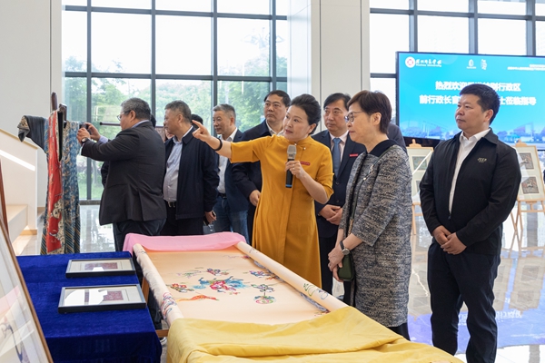 报告会前,林郑月娥女士一行参观了我校“古董刺绣”展、践行“两山”理念展示馆。