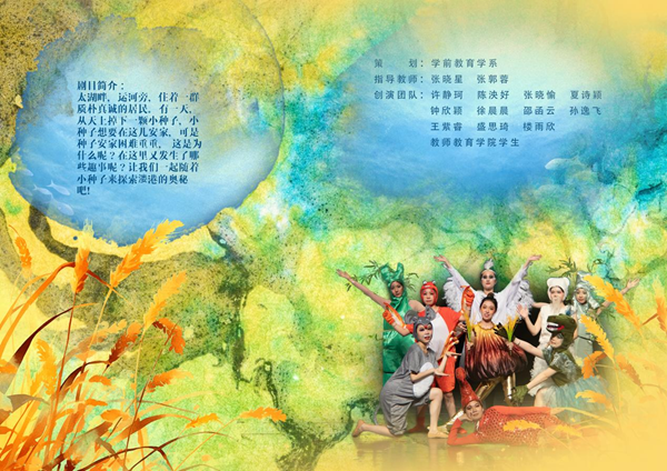湖州师院教师教育学院原创儿童剧展演已连续举办多年,成为湖州市内展现儿童戏剧优秀成果的良好平台,受到广大儿童戏剧工作者的重视和湖州本地儿童的欢迎。在2024年六一儿童节到来之际,为向全社会展示湖州师院的文化创新力,传递新时代青年锐意进取的精神力量,湖州师院教师教育学院特别打造集舞蹈、音乐和戏剧为一体的大型原创儿童剧。本次展演剧目为原创儿童剧《溇港的一颗种子》,主要讲述了一颗种子从萌发到成长的奇妙经历,欢迎广大师生前来观看。