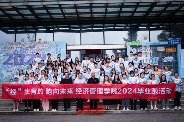 为了激励学院2024届全体毕业生勇往直前、锐意进取,在人生的道路上跑出健康、跑出精彩、跑向新征程,6月11日,经济管理学院精心策划了第三届“经生有约 跑向未来”校园毕业跑活动。学院党政领导班子成员到场为同学们加油、喝彩。