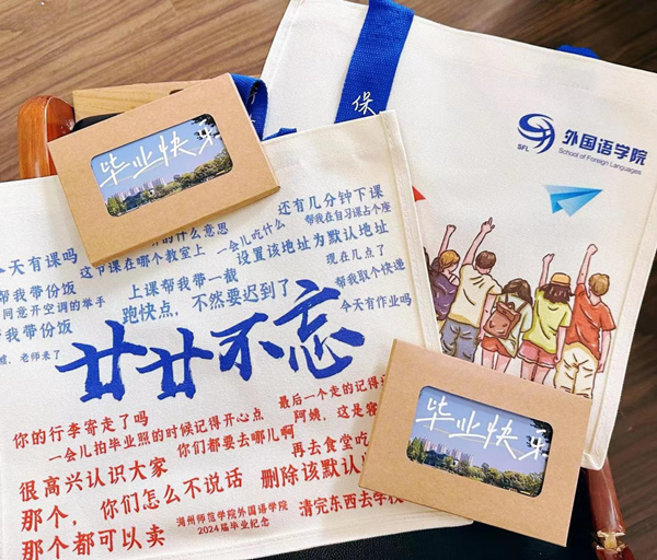 外国语学院进行了“时光长廊”“拍立得打卡”“校友小家”等场景布置,请毕业生们留下自己对未来的希冀,表达对老师、对学院、对母校的感恩之情。外国语学院为每一位毕业生都准备了一份精美的文创礼品,表达诚挚的祝福。学生们纷纷对学院、学校的培养表示感谢,大家一致表示,即使走出了校门,心里依然会牵挂着母校,以实际行动为学院、为学校争光。