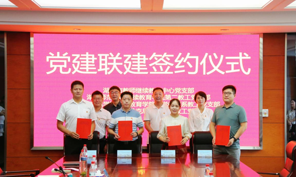 为进一步凝聚党组织联建动能,助力湖州师(干)训工作高质量发展,6月28日上午,继续教育学院第二教工党支部联合教师教育学院小学教育系教工党支部、马克思主义学院教工党支部与湖州市教师继续教育中心党支部签署“研训聚力”共进型党建联建协议,并开展联建活动。湖州市教师继续教育中心主任陈洪伟、教师教育学院党委书记沈江龙、继续教育学院党总支书记、院长季志、马克思主义学院党总支书记许金凤及四个支部书记、党员代表参加,活动由继续教育学院党总支副书记方君亮主持。