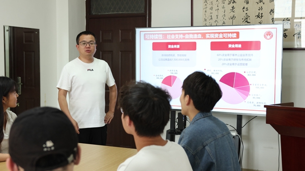 在肖汉杰看来,学科竞赛与科研探索是一体的。他十分重视对学生创新能力的培养,鼓励学生积极参加国创赛、省级A类竞赛等各类高水平赛事,并指导带领学生参加。在指导过程中,肖老师十分重视团队建设和制度建设,要求以老带新,将章节责任落实到学生个人。肖老师认真负责,每周都会就具体文本制作技术、图片绘制方法、PPT答辩等问题,与学生进行详细探讨。