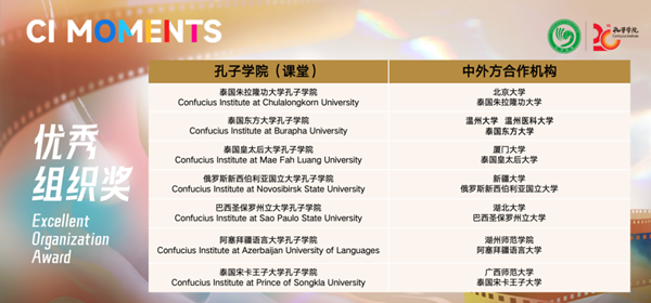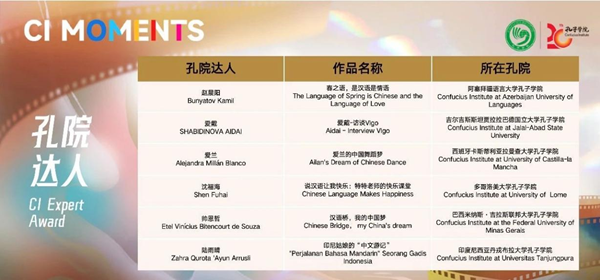 据悉,本届活动共征集到来自91个国家192所孔子学院投稿作品743部,非孔院机构投稿作品41部,总计784部,作品数量和质量均创历史新高。专家评委会秉持着专业、公正、审慎的态度多轮精评,共评选出特等奖3部,一等奖15部,二等奖30部,三等奖100部。35所孔子学院获最佳组织奖,20位创作者获得“孔院达人”称号。