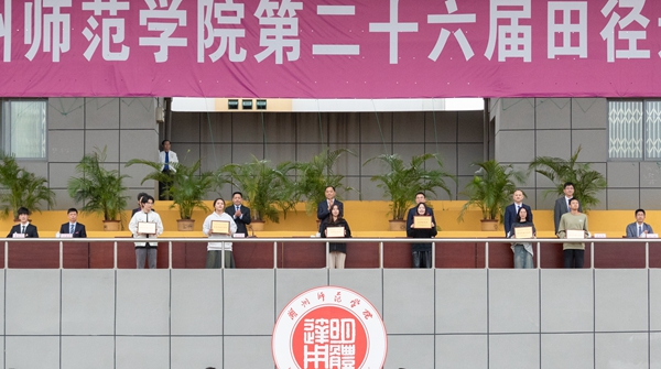 10月25日下午,我校第二十六届运动会闭幕式在东校区体育场举行。校党委副书记陈永华、丁敢真,副校长舒志定,校纪委书记任伟海,副校长潘音、李庆峰,校党委委员、党校办主任沈国丰出席,各二级学院、相关部门等数千名师生参加了闭幕式。闭幕式由舒志定主持。